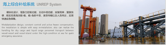 模塊化設(shè)計、恒張力控制功能、主動補償功能、安裝簡單、復(fù)裝快便,能實現(xiàn)高海況船-船、船-島的干貨、液貨傳輸以及人員吊運,實現(xiàn)快速應(yīng)急保障。